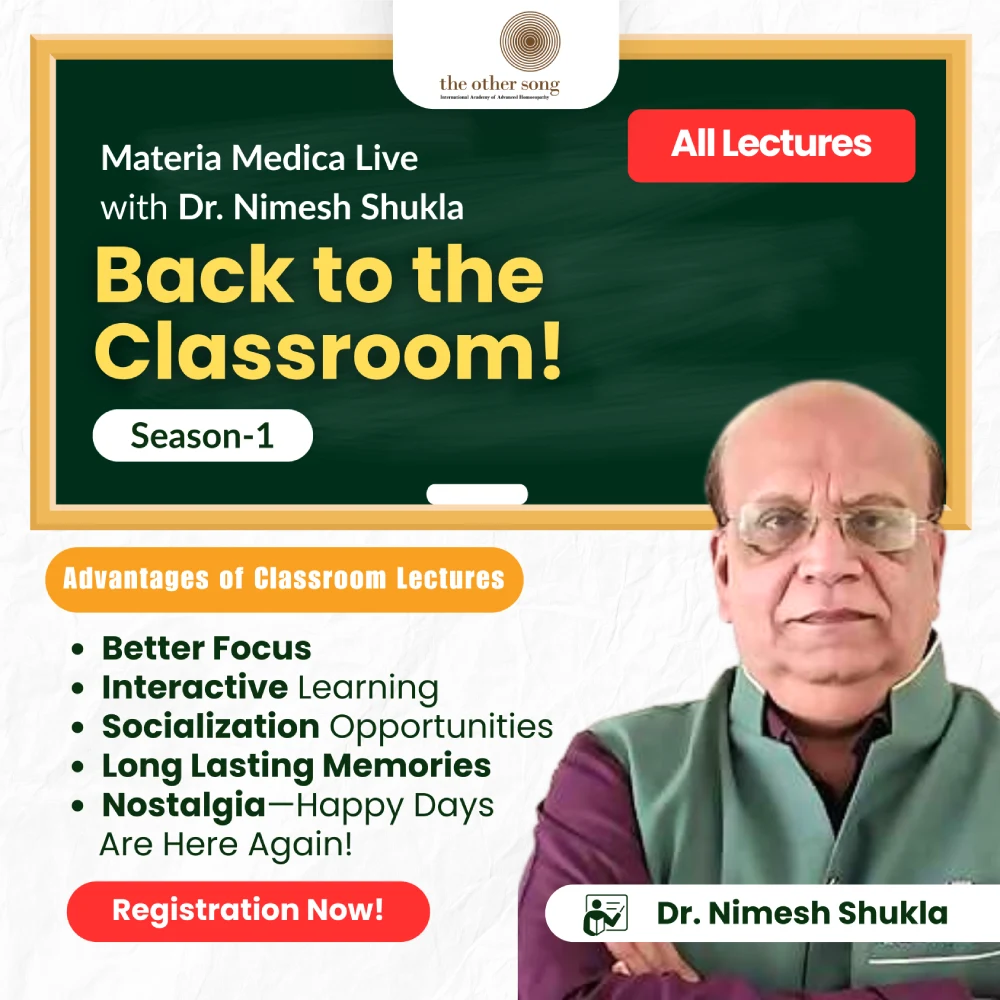 In an age of virtual learning, we invite you back to the classroom—where learning was alive, interactive, and deeply engaging. Join Dr. Nimish Shukla for an offline Materia Medica series that brings remedies to life, just as they were taught and understood during our college days.